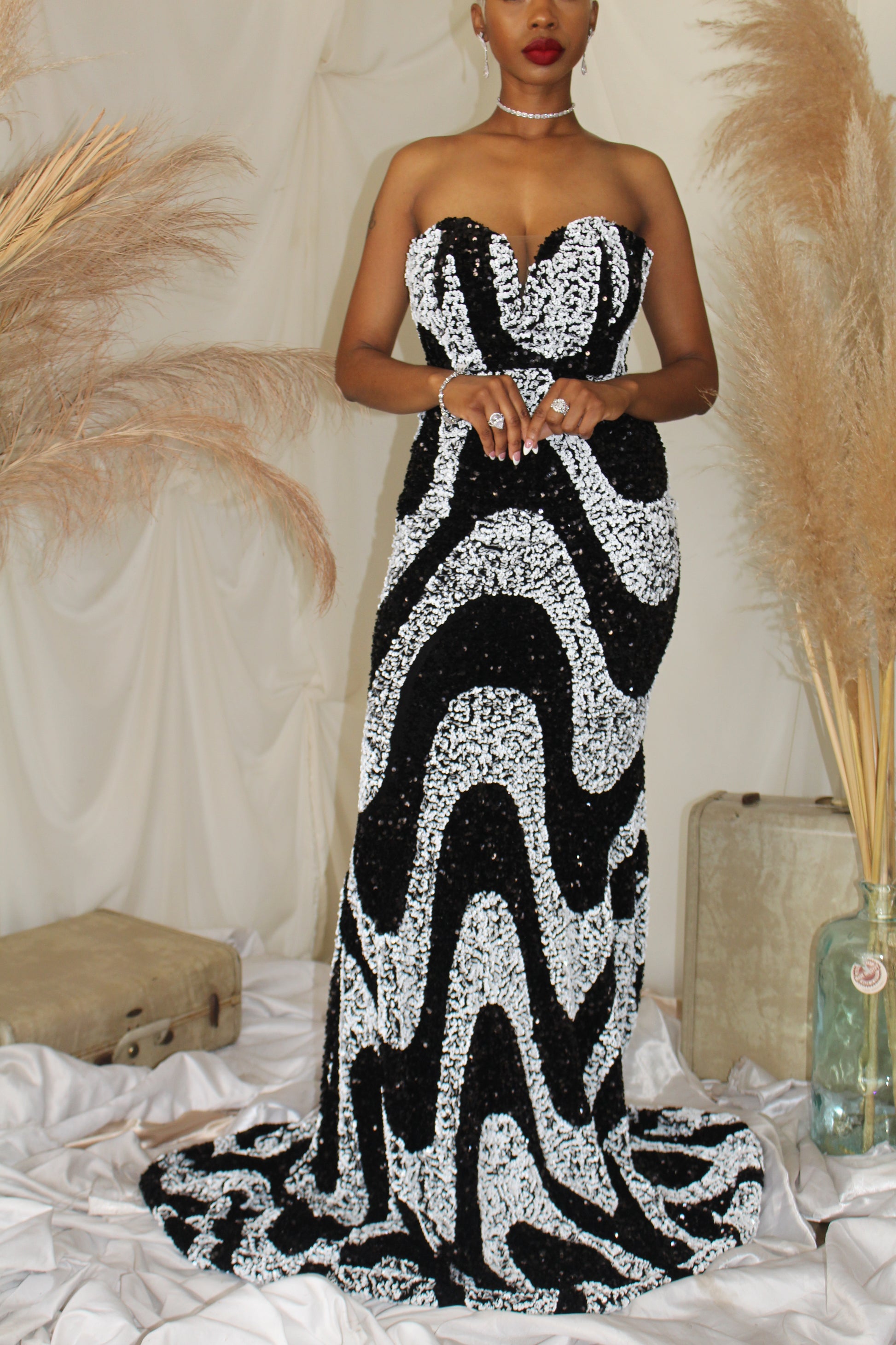 This beauty is strictly Black and White, no Grey area. The details in this fabric will have you turning heads for sure. Treat Yourself.