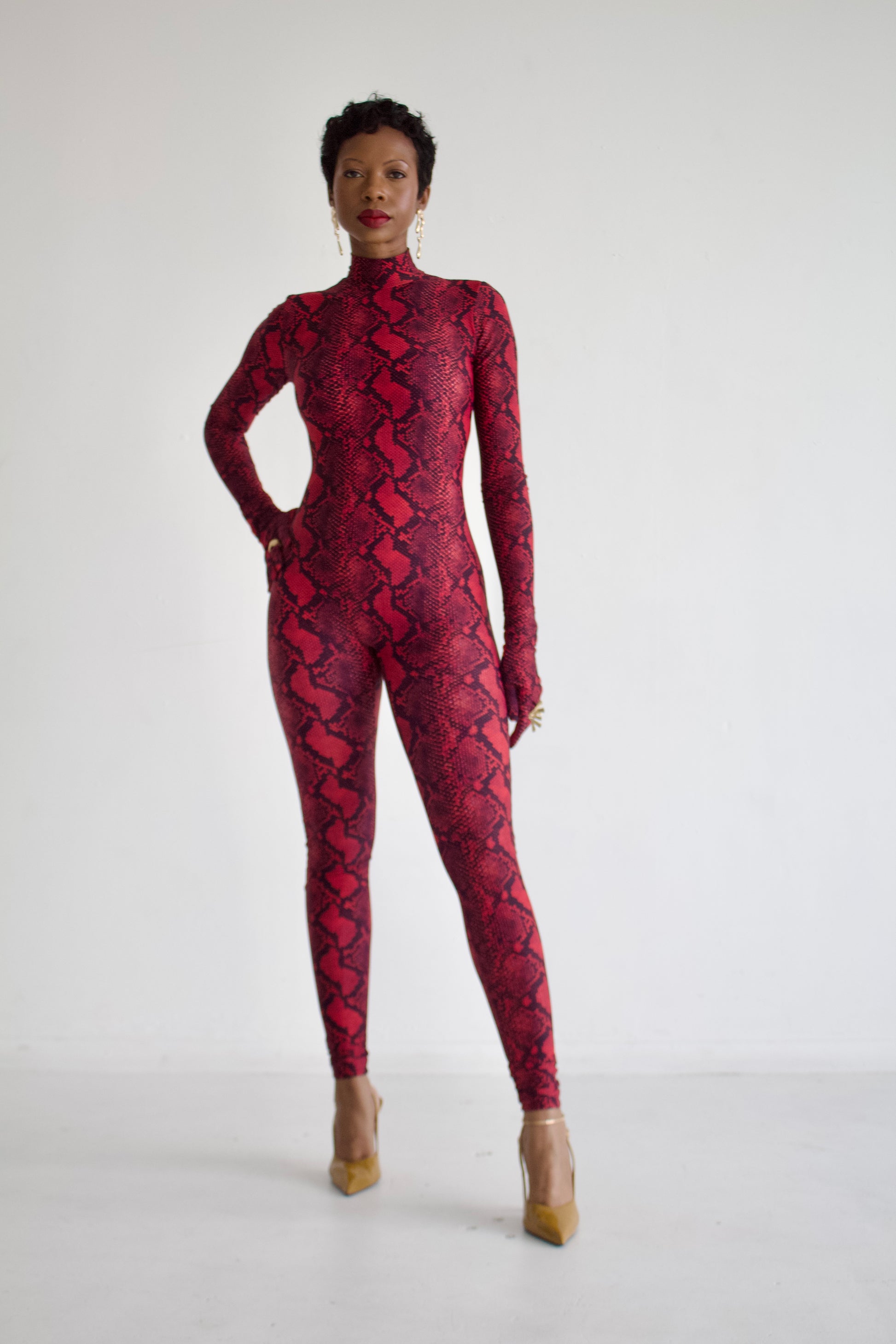 Get ready to make a bold statement with our Snakeskin Print Bodysuit. Its nice stretch provides a comfortable fit while adding a touch of edginess to your outfit. Perfect for any occasion, this 1-piece bodysuit is a must-have for any fashion-forward individual.